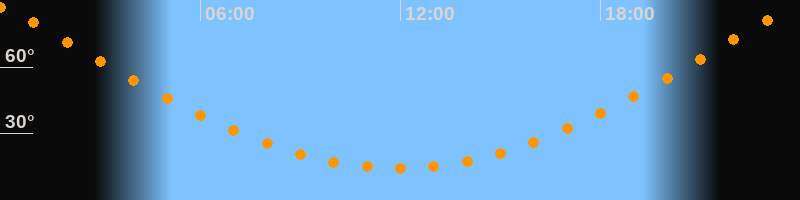 | Höchster Stand (Kulmination) | 23:54 Uhr (h = 87°) |