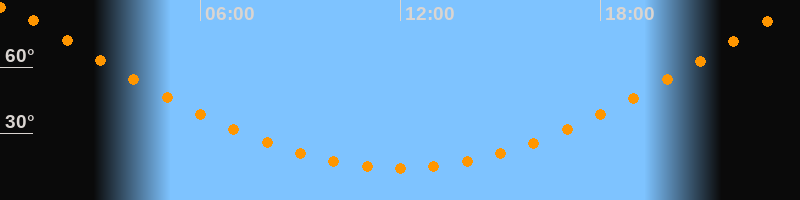 | Höchster Stand (Kulmination) | 23:59 Uhr (h = 87°) |