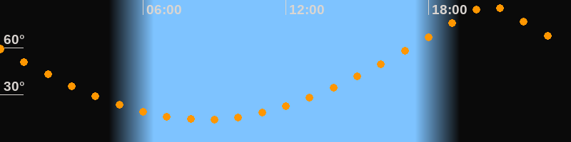 | Höchster Stand (Kulmination) | 20:32 Uhr (h = 87°) |