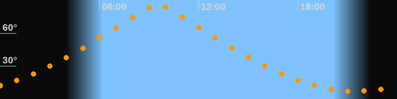 | Höchster Stand (Kulmination) | 09:30 Uhr (h = 85,8°) |