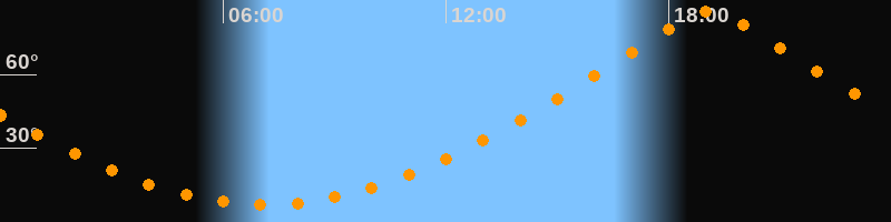 | Höchster Stand (Kulmination) | 19:06 Uhr (h = 85,8°) |