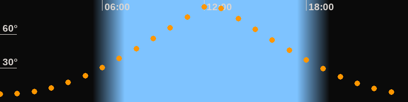 | Höchster Stand (Kulmination) | 12:25 Uhr (h = 85,8°) |