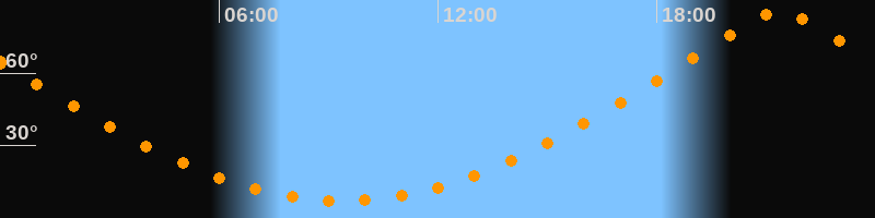 | Höchster Stand (Kulmination) | 21:23 Uhr (h = 85,8°) |
