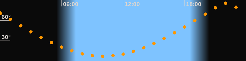 | Höchster Stand (Kulmination) | 22:03 Uhr (h = 85,8°) |