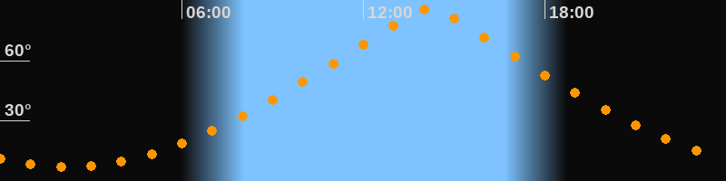 | Höchster Stand (Kulmination) | 14:11 Uhr (h = 85,8°) |