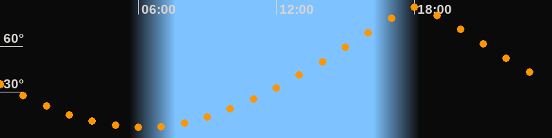 | Höchster Stand (Kulmination) | 18:07 Uhr (h = 85,8°) |