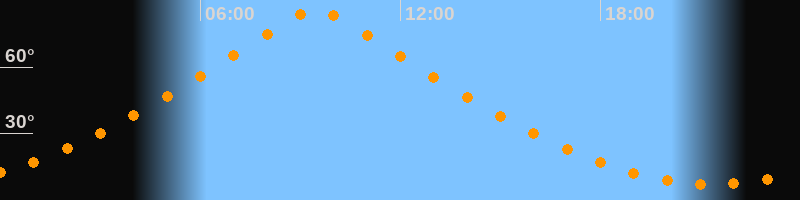 | Höchster Stand (Kulmination) | 09:29 Uhr (h = 85,8°) |