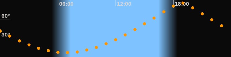| Höchster Stand (Kulmination) | 18:50 Uhr (h = 85,8°) |