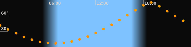 | Höchster Stand (Kulmination) | 18:55 Uhr (h = 85,8°) |