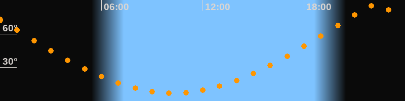 Höchster Stand (Kulmination)22:14 Uhr (h = 85,8°)