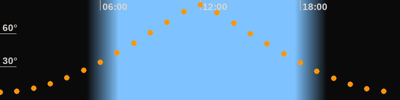 | Höchster Stand (Kulmination) | 11:57 Uhr (h = 85,8°) |