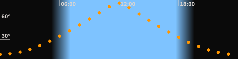 | Höchster Stand (Kulmination) | 11:53 Uhr (h = 85,8°) |