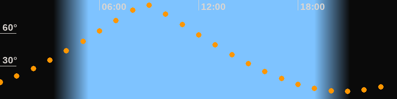 | Höchster Stand (Kulmination) | 08:48 Uhr (h = 85,8°) |