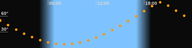 | Höchster Stand (Kulmination) | 20:01 Uhr (h = 85,8°) |