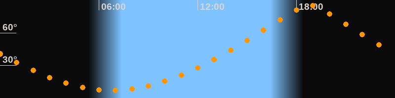 | Höchster Stand (Kulmination) | 18:47 Uhr (h = 85,8°) |