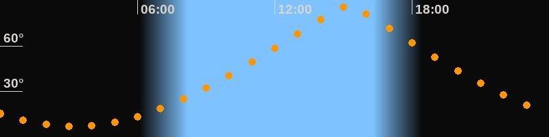 | Höchster Stand (Kulmination) | 15:11 Uhr (h = 85,8°) |