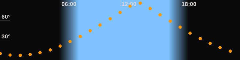 | Höchster Stand (Kulmination) | 13:48 Uhr (h = 85,8°) |