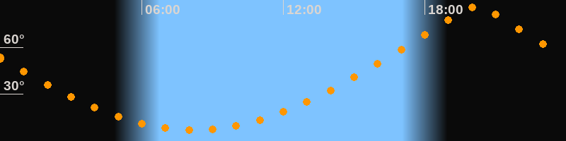| Höchster Stand (Kulmination) | 20:10 Uhr (h = 85,8°) |