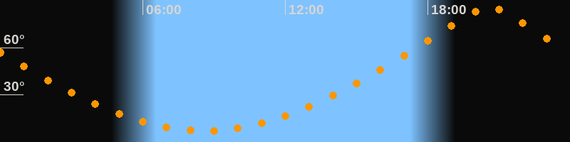 | Höchster Stand (Kulmination) | 20:35 Uhr (h = 85,8°) |