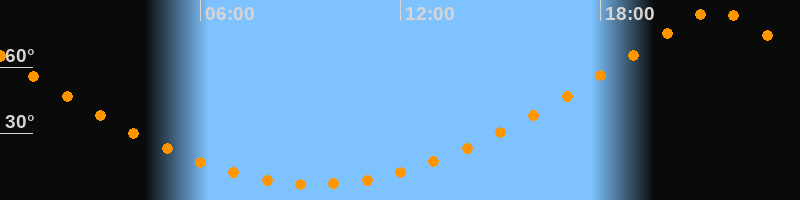 | Höchster Stand (Kulmination) | 21:27 Uhr (h = 85,8°) |
