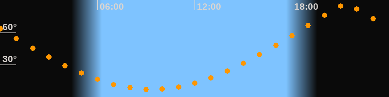 | Höchster Stand (Kulmination) | 21:19 Uhr (h = 85,8°) |