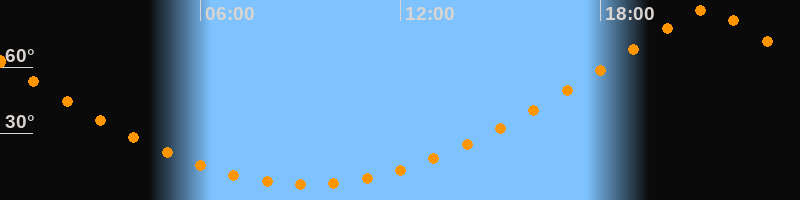 | Höchster Stand (Kulmination) | 21:11 Uhr (h = 85,8°) |