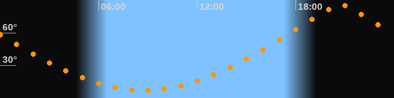 | Höchster Stand (Kulmination) | 20:44 Uhr (h = 85,8°) |