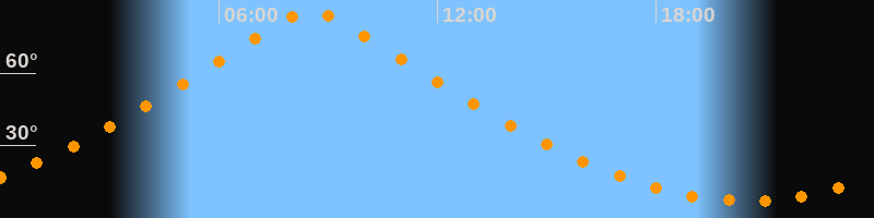 | Höchster Stand (Kulmination) | 08:32 Uhr (h = 85,8°) |