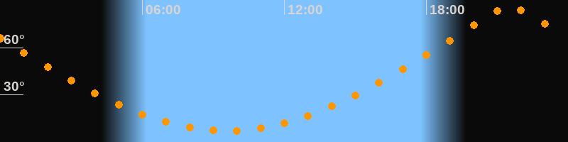 Höchster Stand (Kulmination)21:33 Uhr (h = 85,8°)