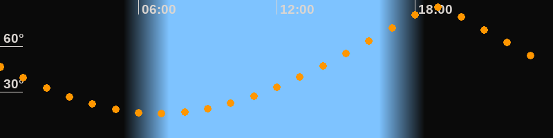 | Höchster Stand (Kulmination) | 18:55 Uhr (h = 85,3°) |