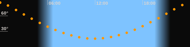 | Höchster Stand (Kulmination) | 23:54 Uhr (h = 85,3°) |