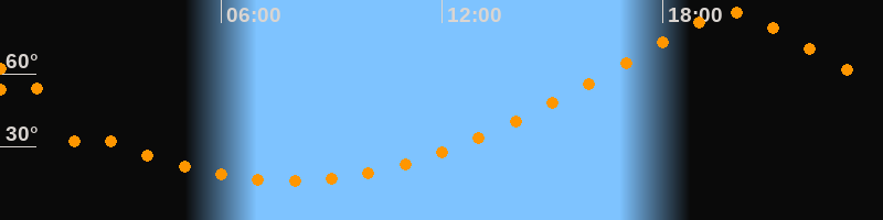 | Höchster Stand (Kulmination) | 19:50 Uhr (h = 85,3°) |