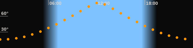 | Höchster Stand (Kulmination) | 12:16 Uhr (h = 85,3°) |