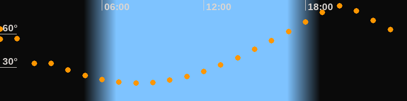 | Höchster Stand (Kulmination) | 20:05 Uhr (h = 85,3°) |