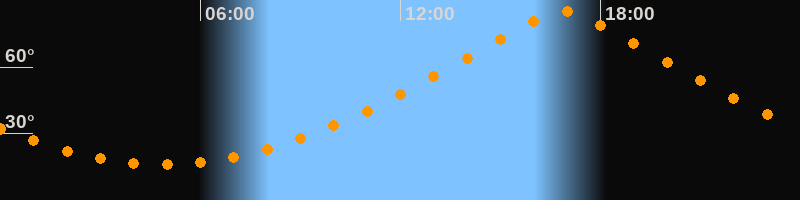 | Höchster Stand (Kulmination) | 16:53 Uhr (h = 85,3°) |