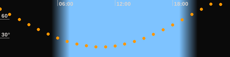 | Höchster Stand (Kulmination) | 22:29 Uhr (h = 85,3°) |