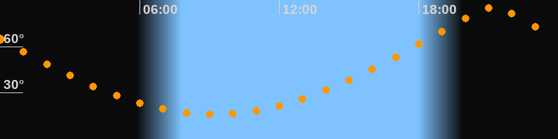 | Höchster Stand (Kulmination) | 21:10 Uhr (h = 85,3°) |