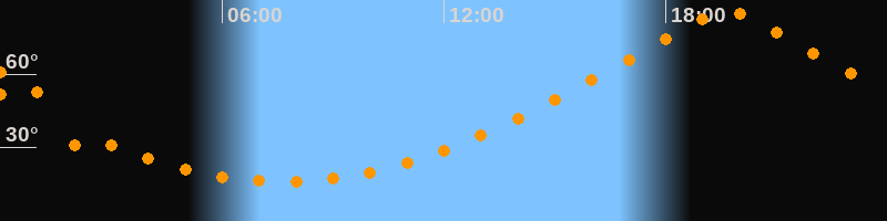 | Höchster Stand (Kulmination) | 19:39 Uhr (h = 85,3°) |