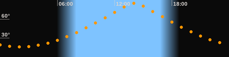 | Höchster Stand (Kulmination) | 14:05 Uhr (h = 85,3°) |
