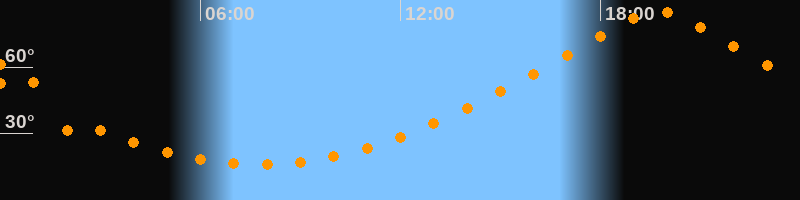 | Höchster Stand (Kulmination) | 19:44 Uhr (h = 85,3°) |