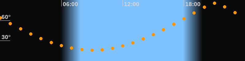 | Höchster Stand (Kulmination) | 21:01 Uhr (h = 85,3°) |