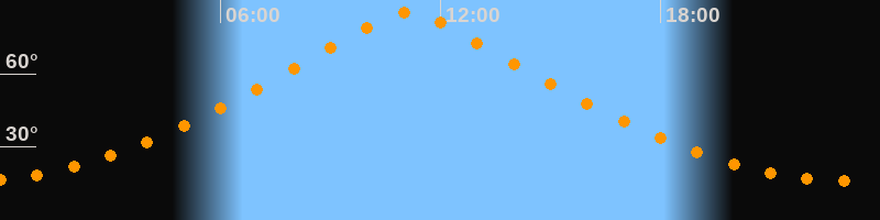 | Höchster Stand (Kulmination) | 11:07 Uhr (h = 85,3°) |