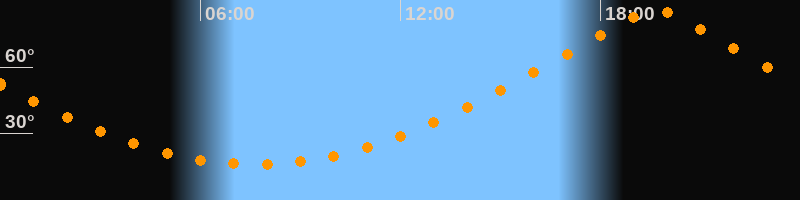 | Höchster Stand (Kulmination) | 19:39 Uhr (h = 85,3°) |