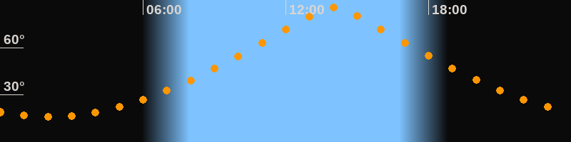 | Höchster Stand (Kulmination) | 14:01 Uhr (h = 85,3°) |