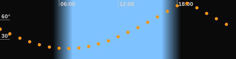 | Höchster Stand (Kulmination) | 18:49 Uhr (h = 85,3°) |