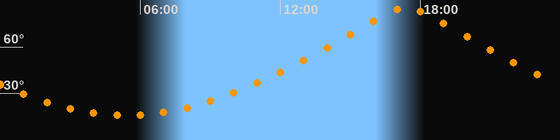 | Höchster Stand (Kulmination) | 17:24 Uhr (h = 85,3°) |
