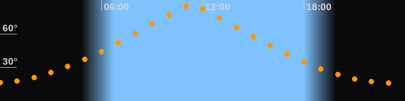 | Höchster Stand (Kulmination) | 11:19 Uhr (h = 85,3°) |
