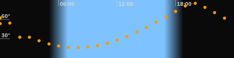 | Höchster Stand (Kulmination) | 19:52 Uhr (h = 85,3°) |