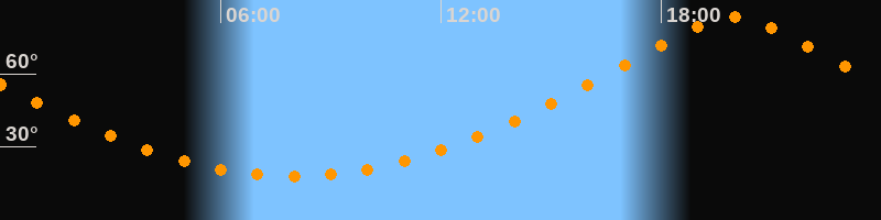 | Höchster Stand (Kulmination) | 19:59 Uhr (h = 83,5°) |