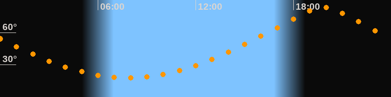 | Höchster Stand (Kulmination) | 19:49 Uhr (h = 83,5°) |